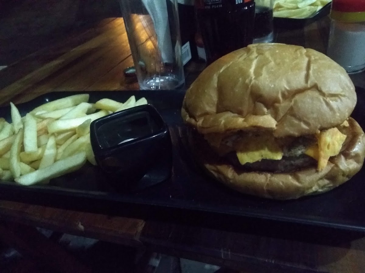 Hambúrguer com carne bem temperada, cebola caramelizada muito boa e ótimo molho. Ambiente agradável. Trilha sonora muito boa. Preço justo.